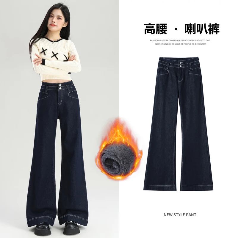 Vaqueros retro de mezclilla con corte de campana para mujer, nuevos pantalones largos casuales de otoño de pierna ancha, pantalones microacampanados de cintura alta que estilizan la figura