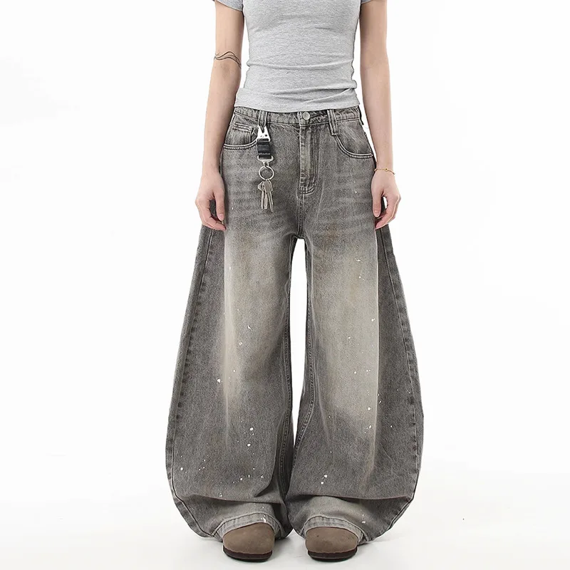 2025 Vaqueros de pierna ancha con diseño de sentido de hebilla diagonal asimétrica. Vaqueros sueltos informales Retro de moda urbana nueva para las cuatro estaciones para mujer