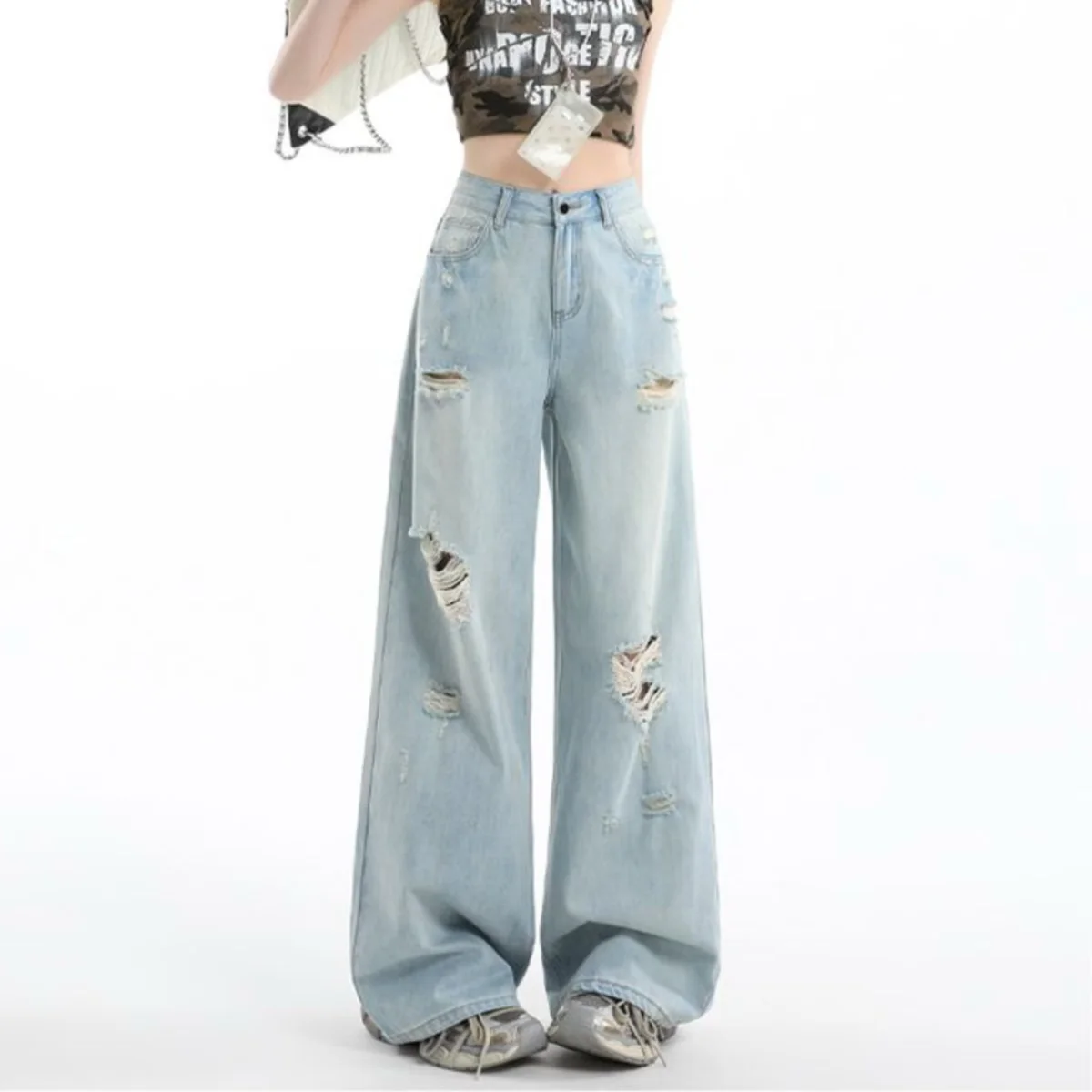 Pantalones Vaqueros de Verano para Mujer, Cintura Alta, Pierna Ancha, Estilo Y2K, Casual, Novedad