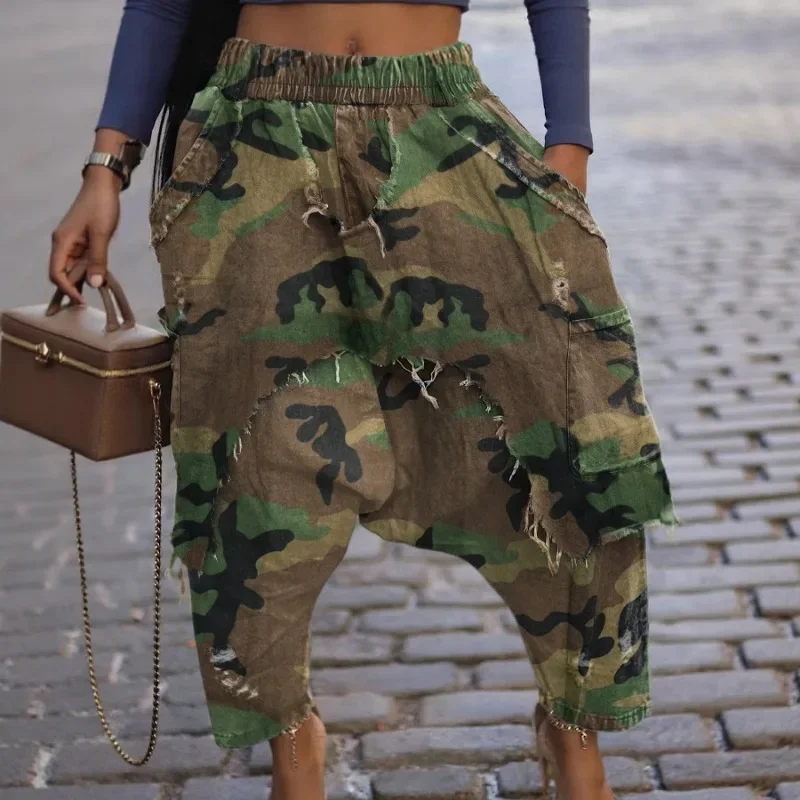 GUWU Jeans Personalizados y Modernos con Efecto Desgastado, Pelaje y Agujeros, Pantalones Harun Holgados de Camuflaje a la Moda