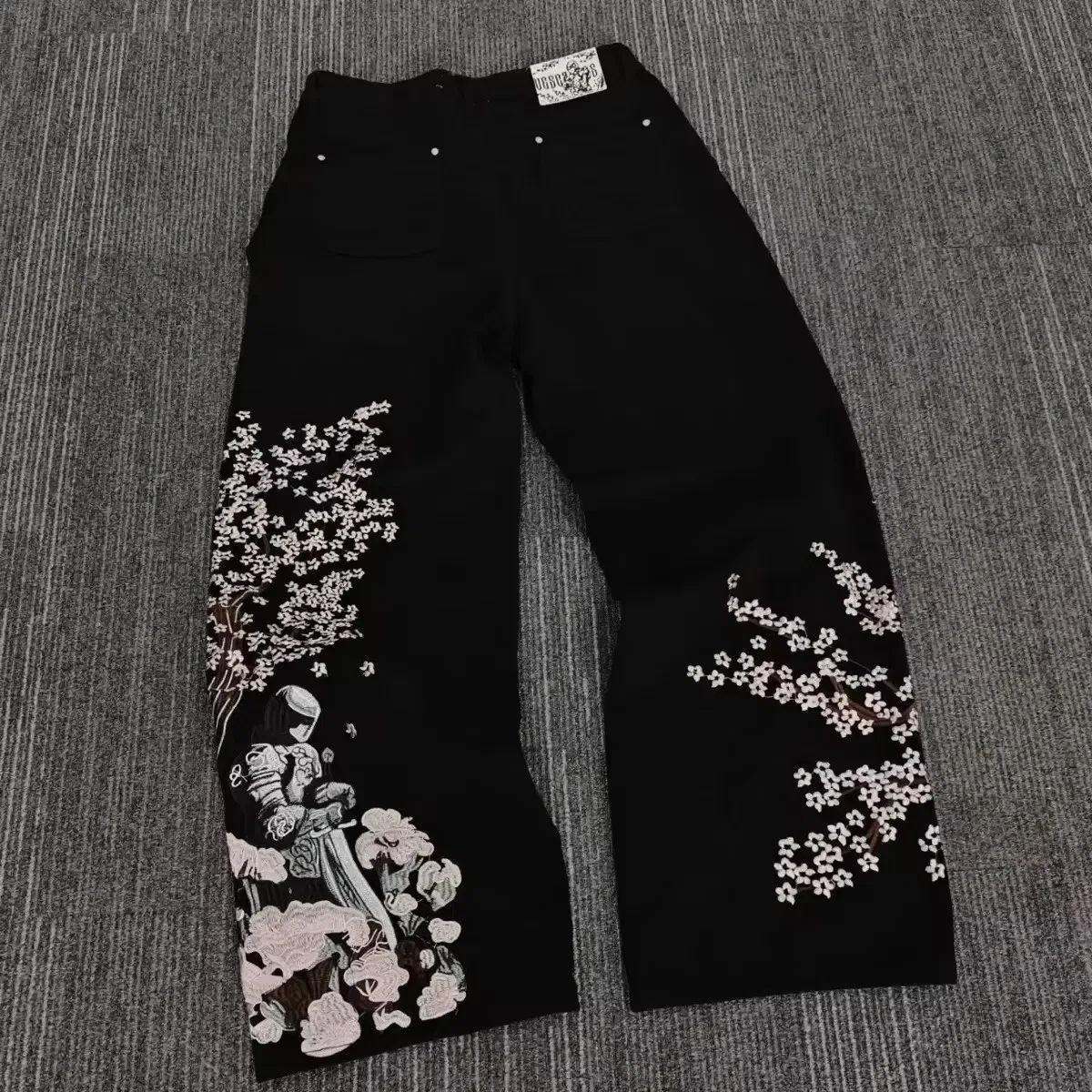 Jeans Y2K de los años 2000 con estampado de flor de cerezo para mujer, casuales, de cintura alta, pierna ancha recta, estilo Harajuku japonés vintage, ropa femenina
