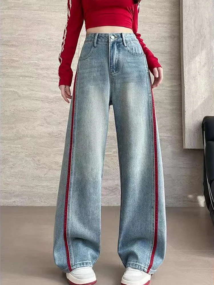 Jeans Bordados Estilo Y2K para Mujer, Estilo Americano, Parches en Contraste, Pantalones Anchos de Pierna Ancha, Holgados y Estilizantes