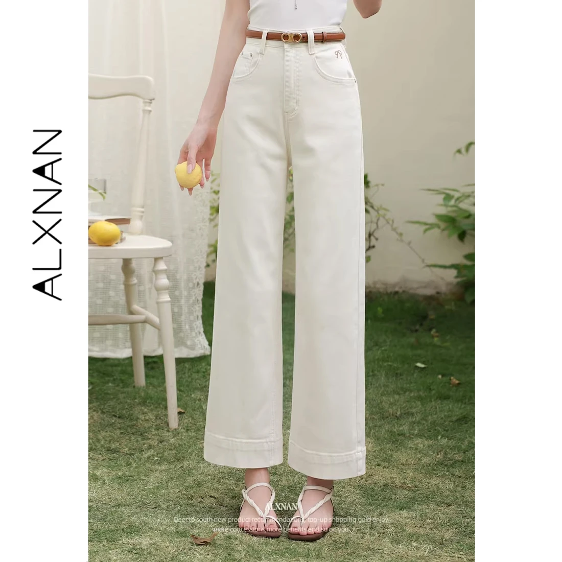 ALXNAN Jeans de Mezclilla Color Albaricoque, Corte Ancho, Casual, Elegante, Rectos, Primavera-Verano 2026, Nueva Moda, Estilo Vintage, Holgados, L62363