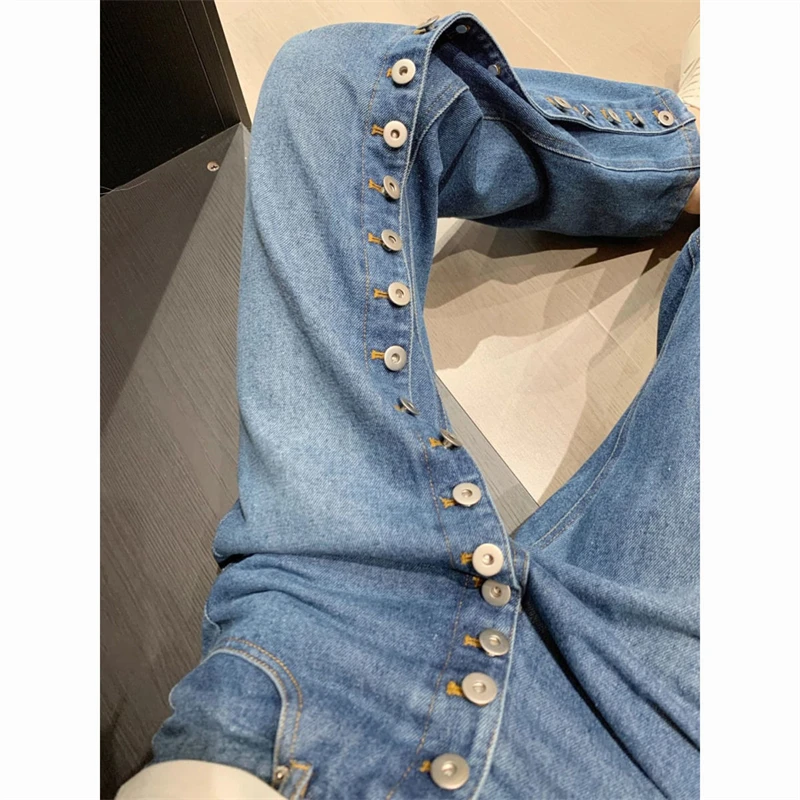 Pantalones vaqueros azules con diseño de botones continuo para mujer, ropa de calle de cintura alta para chica, pantalones de moda, pantalones vaqueros informales para mujer
