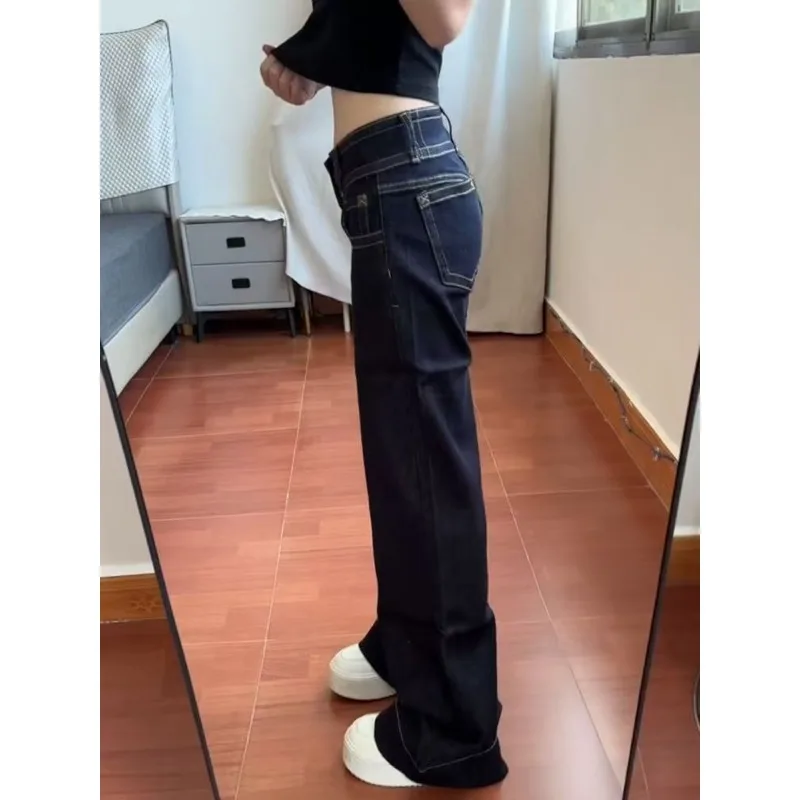 Jeans para Mujer, Estilo Americano, Cintura Doble con Botones, Corte Bootcut, Ajuste Holgado, Cintura Baja, Pierna Recta, No Ajustados