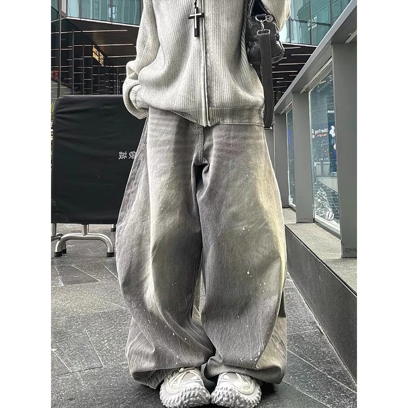 Pantalones Vaqueros Anchos de Mezclilla Gris Estilo Americano, Retro, de Cintura Alta, Holgados, Casuales, Estilo Harajuku