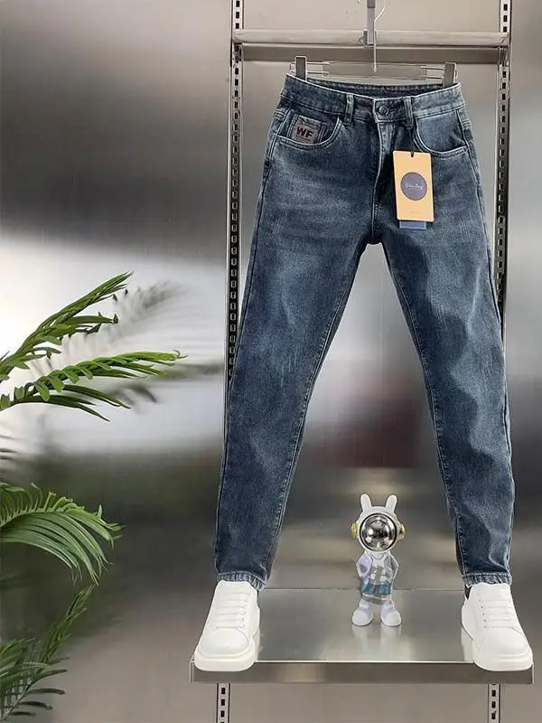Nuevos pantalones ligeros de lujo elásticos ajustados para hombre, cómodos y suaves pantalones vaqueros informales rectos a la moda de negocios, ropa de marca masculina