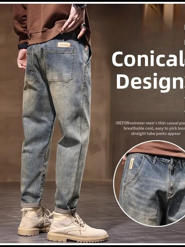 Pantalones vaqueros rectos para hombre, novedad de verano 2025, pantalones vaqueros finos, pantalones informales sueltos de pierna ancha para exteriores, pantalones de nueve puntos a la moda 28-36