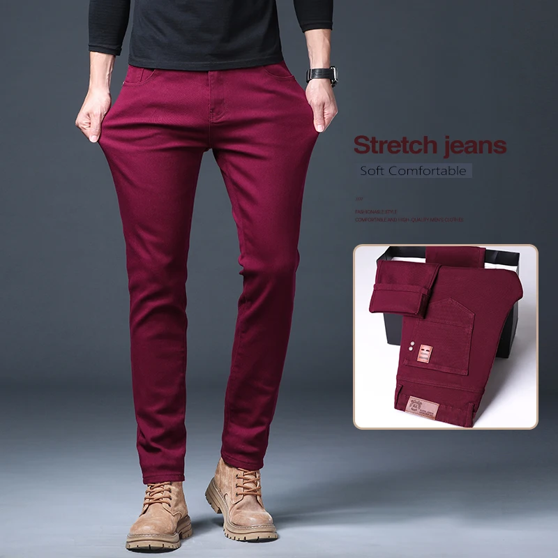 Pantalones vaqueros rectos ajustados elásticos de primavera para hombre, pantalones vaqueros coreanos de moda coloridos, pantalones de trabajo de negocios cómodos y suaves informales