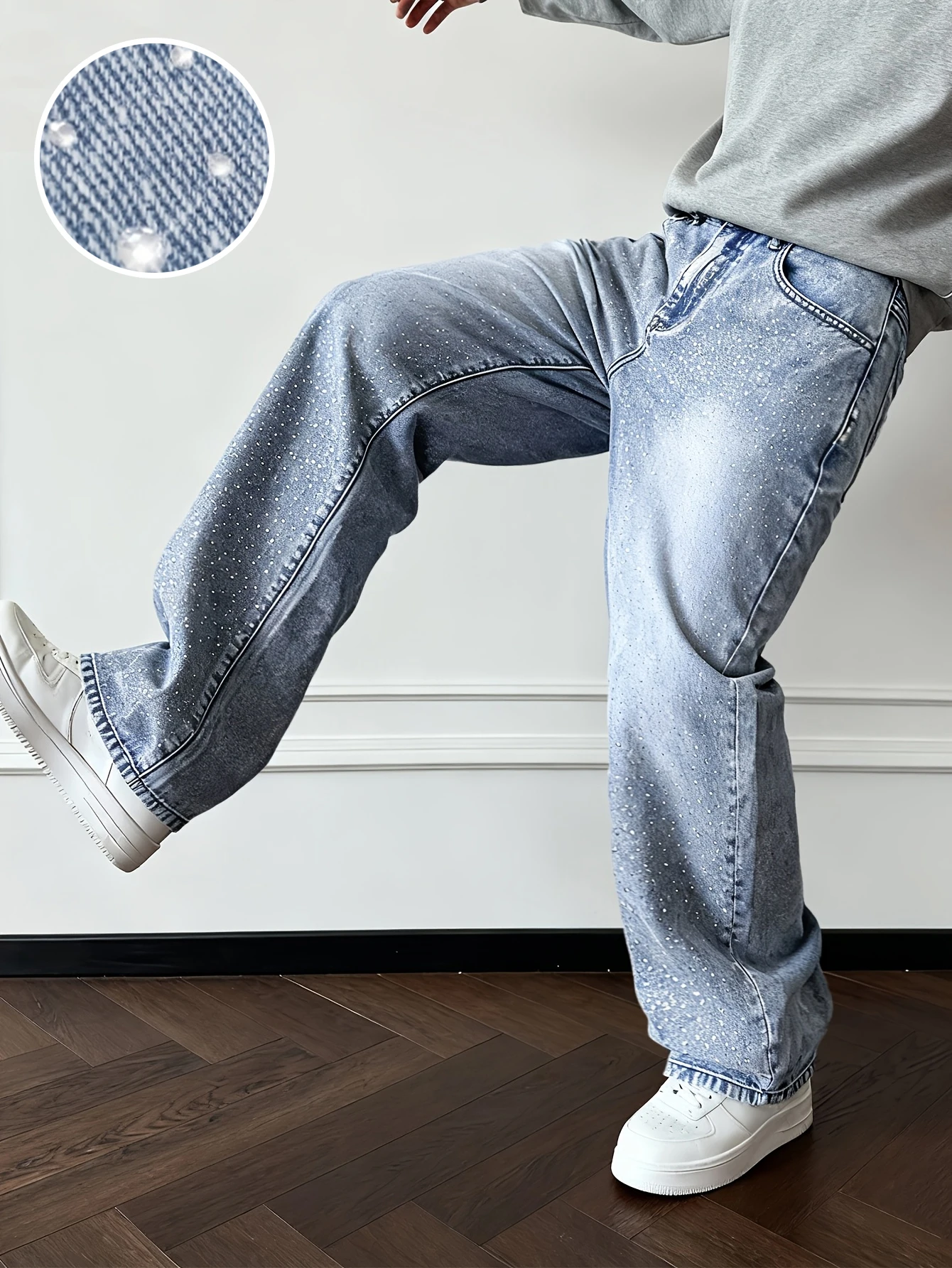 Pantalones Vaqueros para Hombre, Estilo Urbano 2026, Pantalones Rectos de Talla Grande, Pantalones Vaqueros Azules con Diamantes de Moda, Estilo Hip-Hop