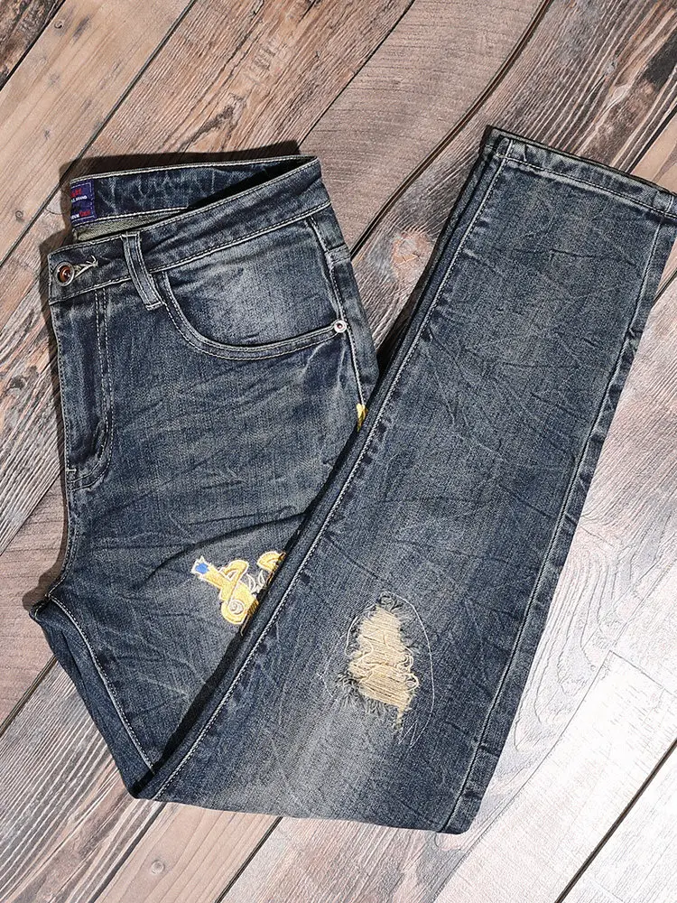 Pantalones Vaqueros Retro Estilo Americano 2026 para Hombre, Marca Piercing Tide, Bordado de Alta Gama, Ajustados, de Pierna Estrecha
