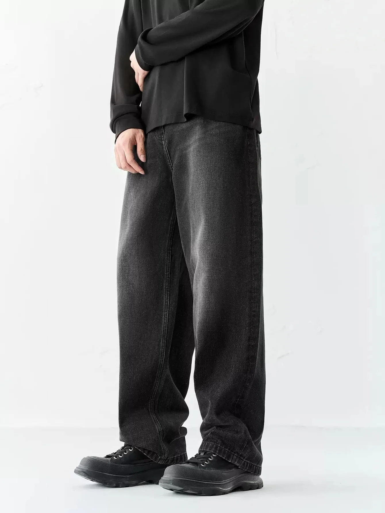 Pantalones Vaqueros Holgados Negros para Hombre, Estilo Y2K Original, Pantalones Casuales de Mezclilla, Sin Accesorios ni Cinturones Incluidos
