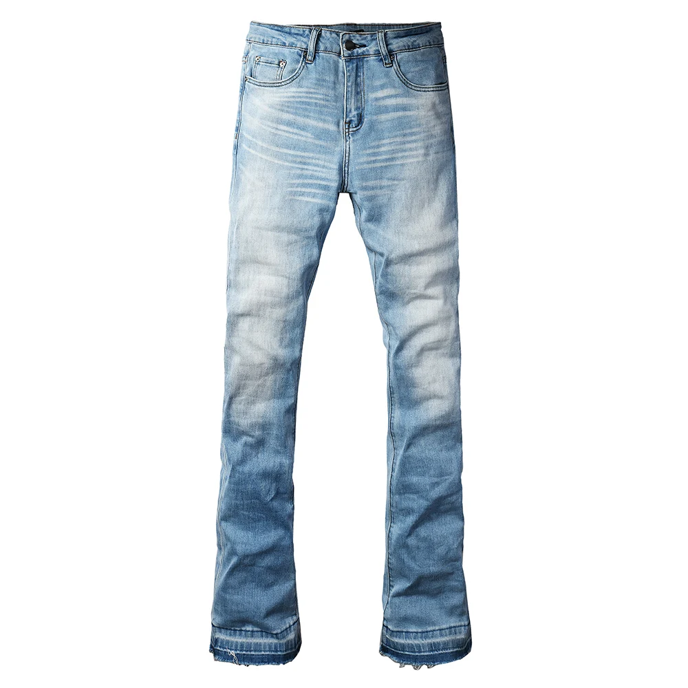 Pantalones Vaqueros de Mezclilla de Corte Bootcut Azul Claro para Hombre, Casuales, Clásicos, con Dobladillo Deshilachado, Pantalones Largos de Alta Calidad para Hombres Altos