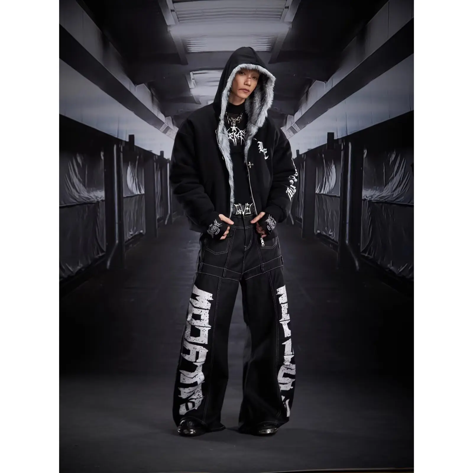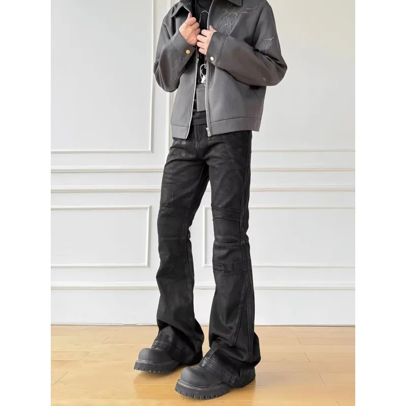 Nuevos pantalones vaqueros micro acampanados recubiertos de la industria pesada Retro americana para hombres y mujeres vaqueros sueltos informales góticos Vintage negros