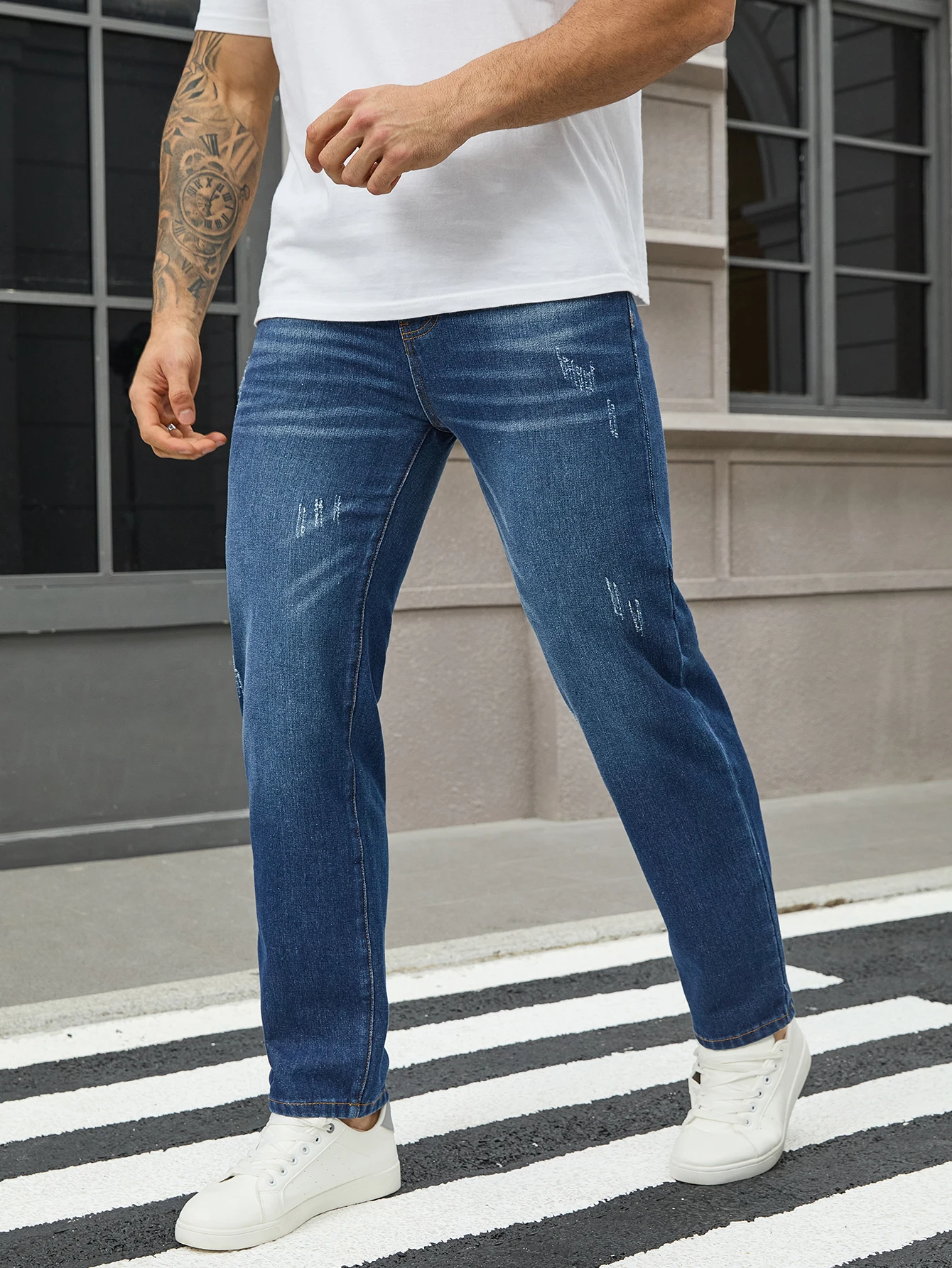 Pantalones Vaqueros para Hombre, Primavera/Verano 2026, Semi-Elásticos, con Cierre de Botón y Cremallera, Azul, Corte Regular
