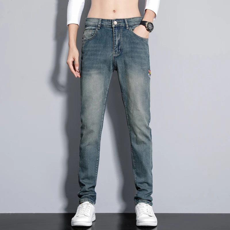 Pantalones vaqueros Retro americanos para hombre, corte entallado, finos, elásticos, informales, a la moda, populares, rectos, largos, verano 2025