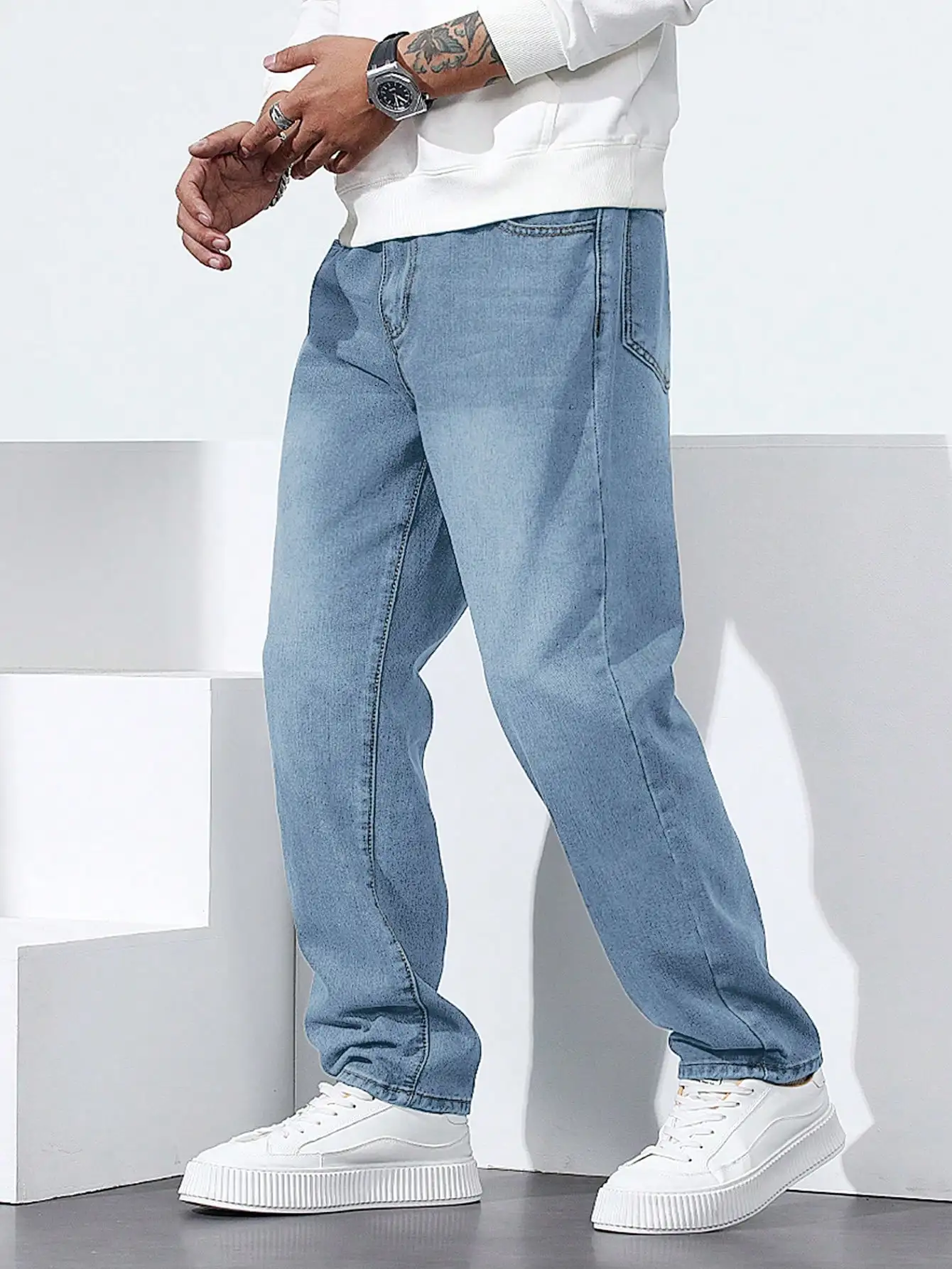 Pantalones vaqueros para hombre, versión coreana, pantalones informales para estudiantes, pantalones vaqueros rectos sueltos de pierna ancha, pantalones vaqueros holgados negros, grises y azules