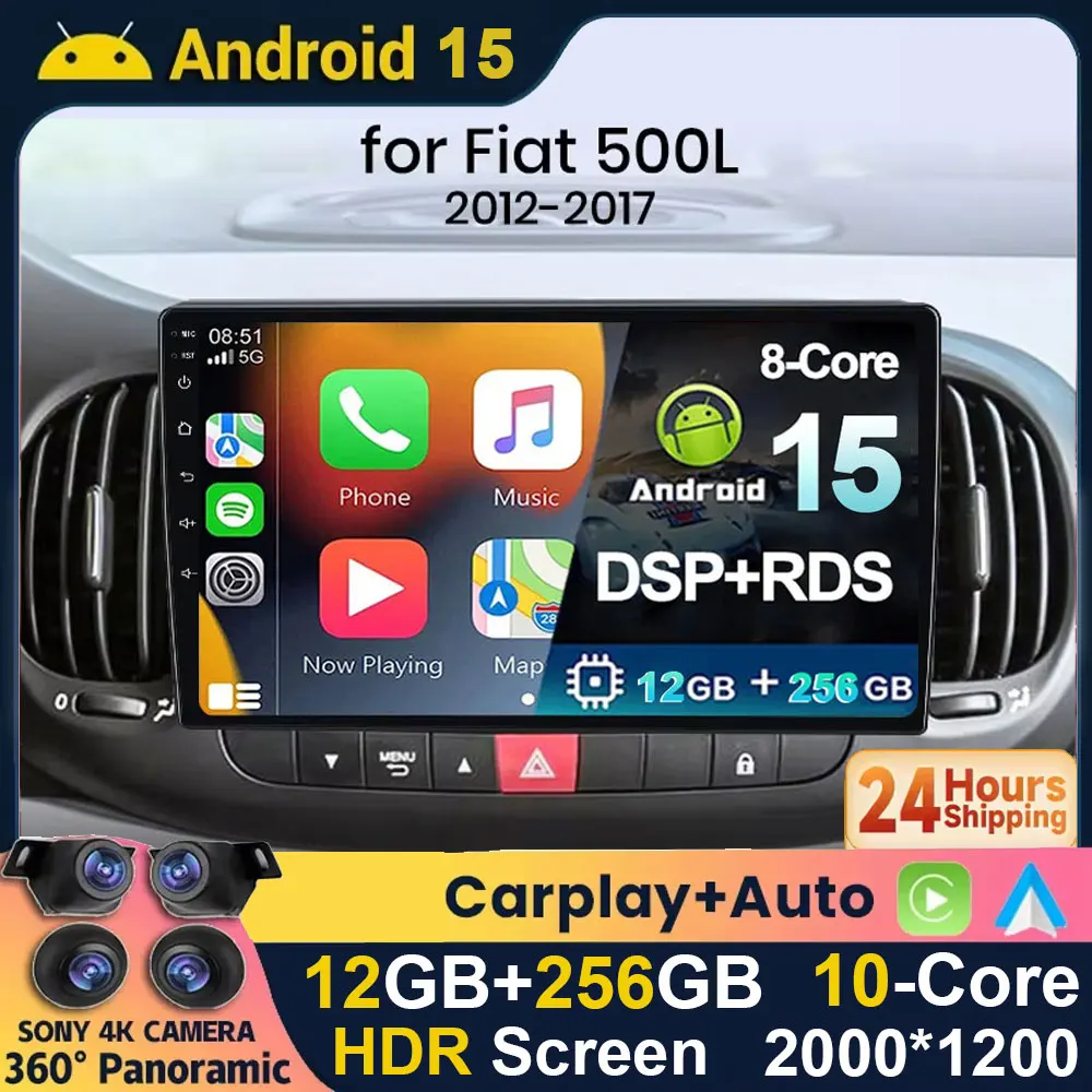 Android 15 Radio de coche Autoradio para Fiat 500L 2012-2017 pantalla Carplay inalámbrica Auto Estéreo GPS Navi 4G WIFI BT RDS Multimedia