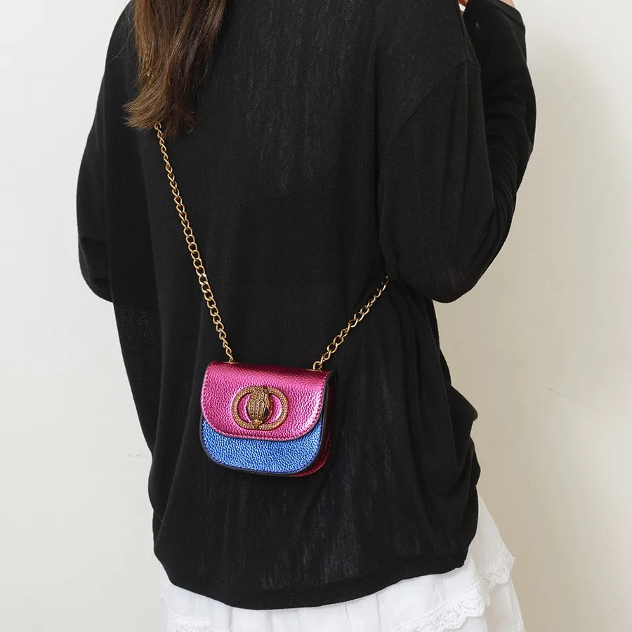 2026 nueva tendencia cadena de cabeza de águila versátil medio redondo Mini sillín nicho personalidad Color-Block bolso de hombro único