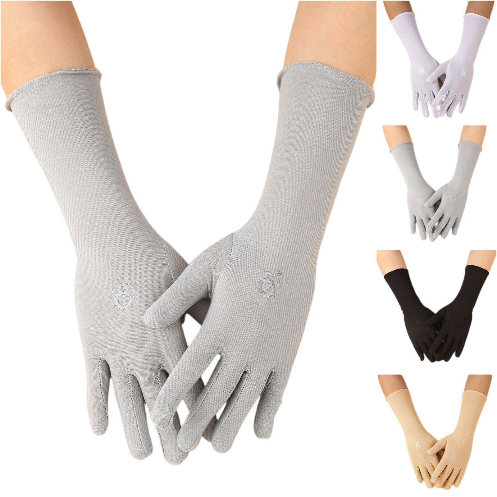 Guantes largos y finos con protección solar para mujer, guantes bordados transpirables de verano a la moda para negocios, elegantes guantes de poliéster