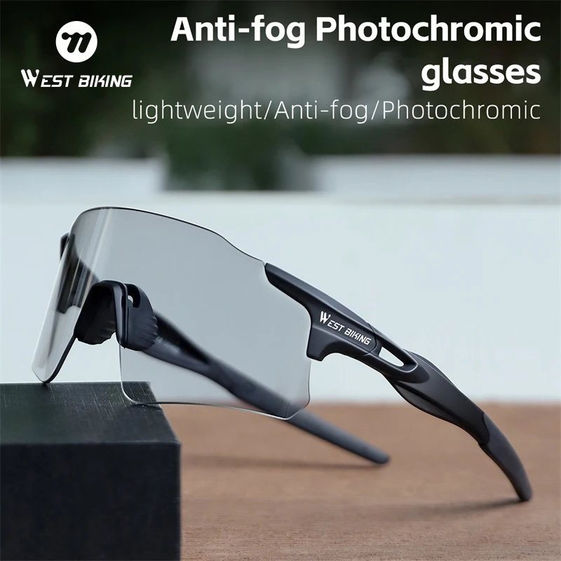 Gafas de Ciclismo Antivaho WEST BIKING, Gafas de Ciclismo Fotocromáticas sin Marco, Gafas de Ciclismo Unisex Ligeras para Correr, Conducir, Equipo Deportivo