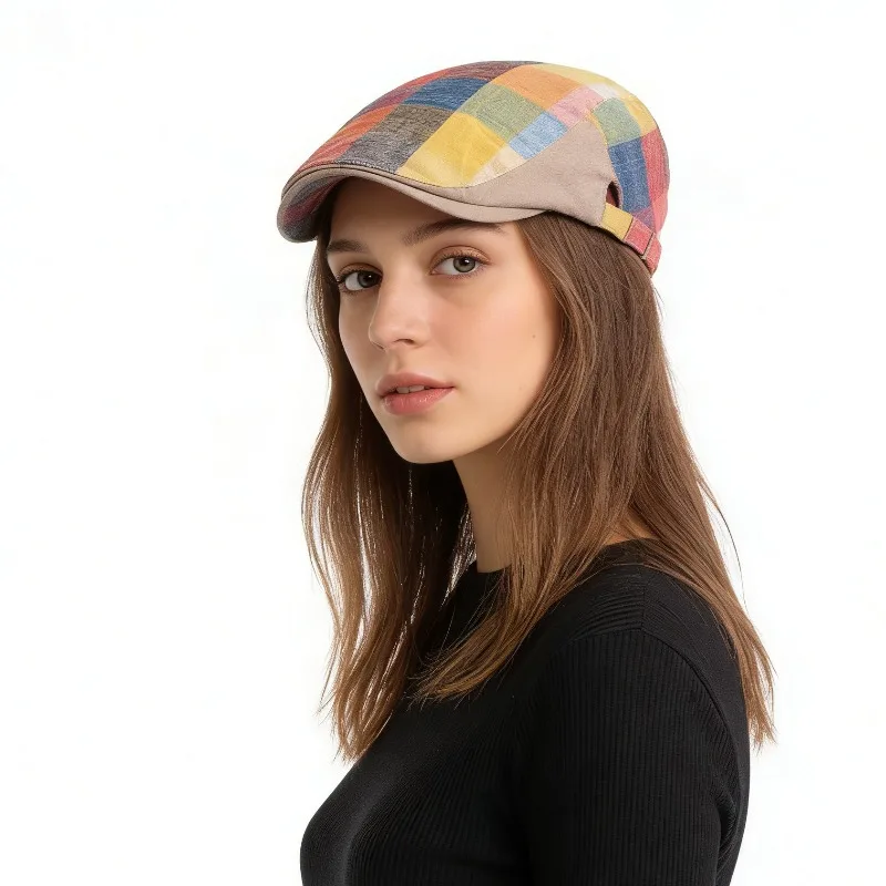 Boinas unisex de primavera/verano, gorras multicolor a cuadros, gorra estilo Newsboy, gorra plana tipo pico de pato para mujeres y hombres