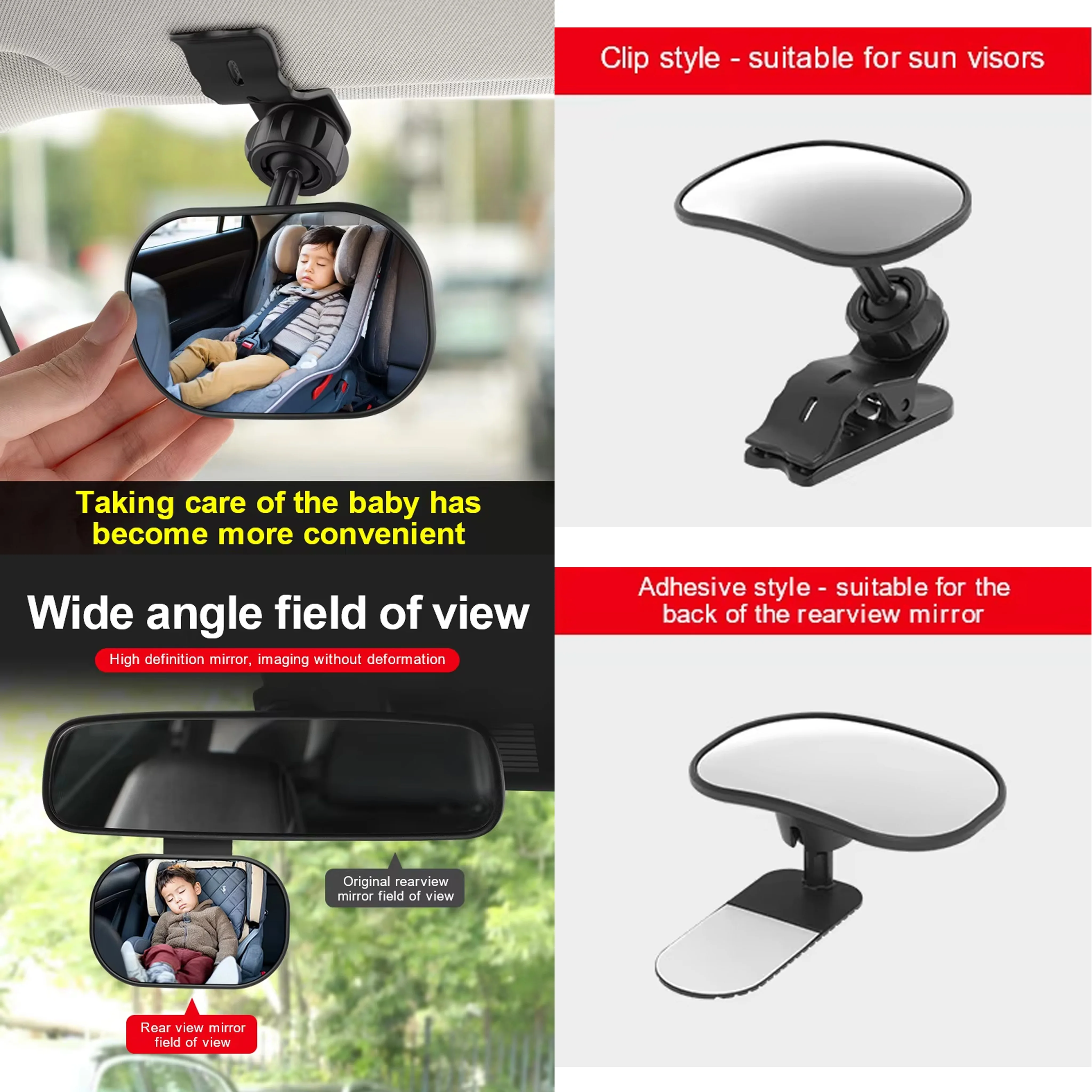 Espejo Retrovisor Ajustable para Asiento Trasero de Coche, Espejo de Seguridad para Bebés/Niños, con Clip o Adhesivo, Espejo de Seguridad para Bebés en el Interior del Coche