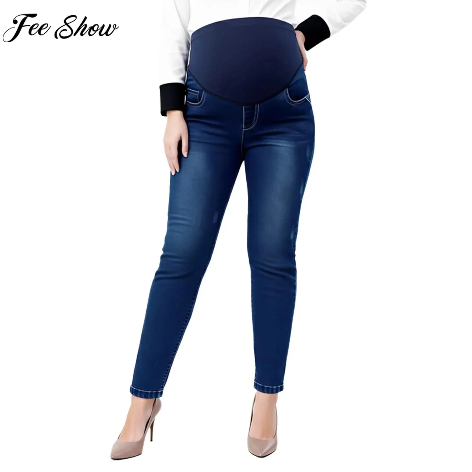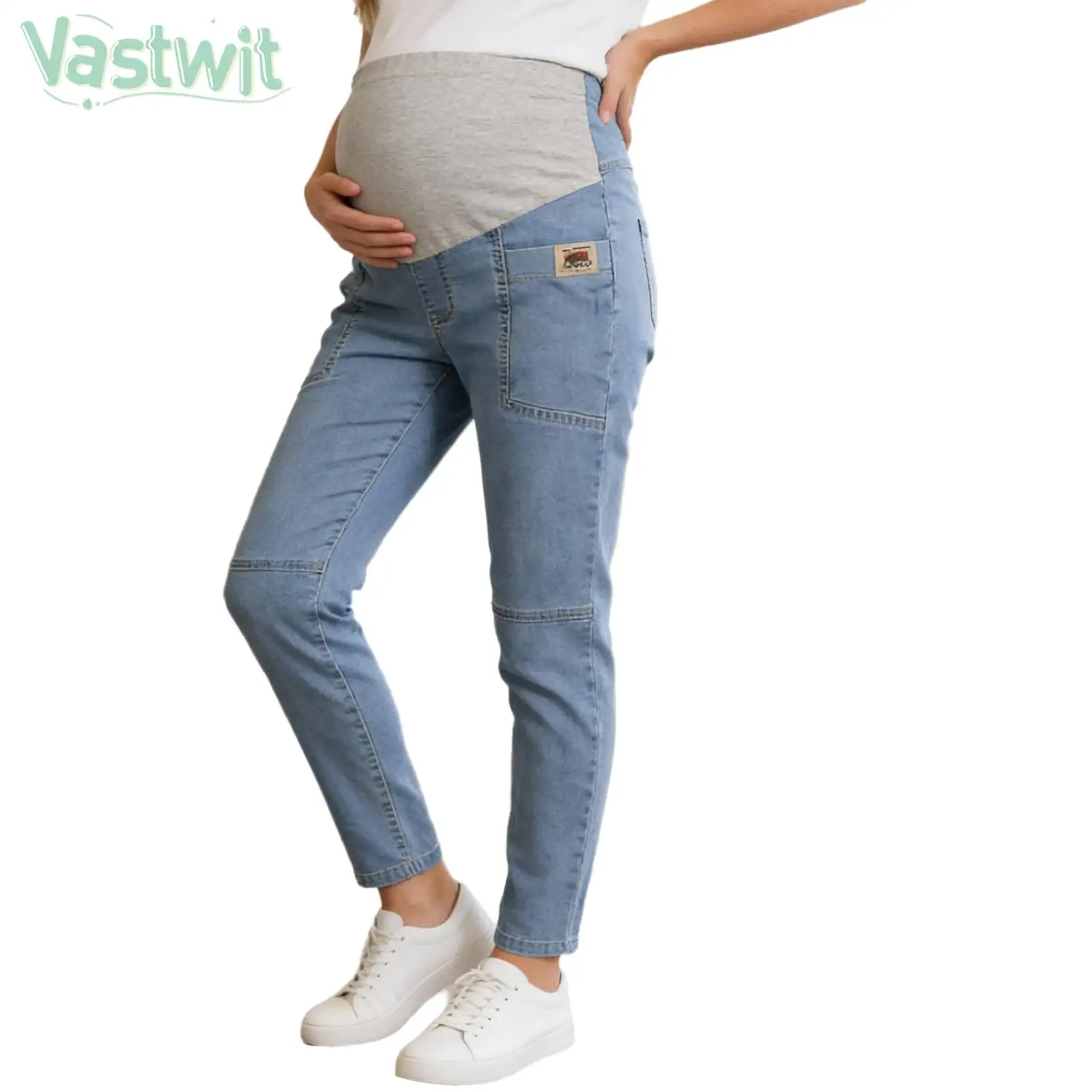 Pantalones Vaqueros de Maternidad de Moda Primavera-Verano, Casuales, de Cintura Alta, Ajustables Sobre el Vientre, para el Trabajo Diario y Compras