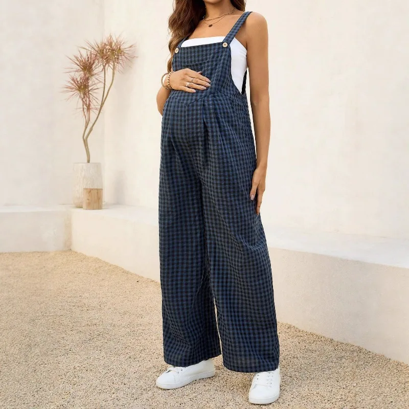 Ropa de Maternidad, Mono Holgado a Cuadros, Cómodo, Informal, Transpirable, de Alta Calidad