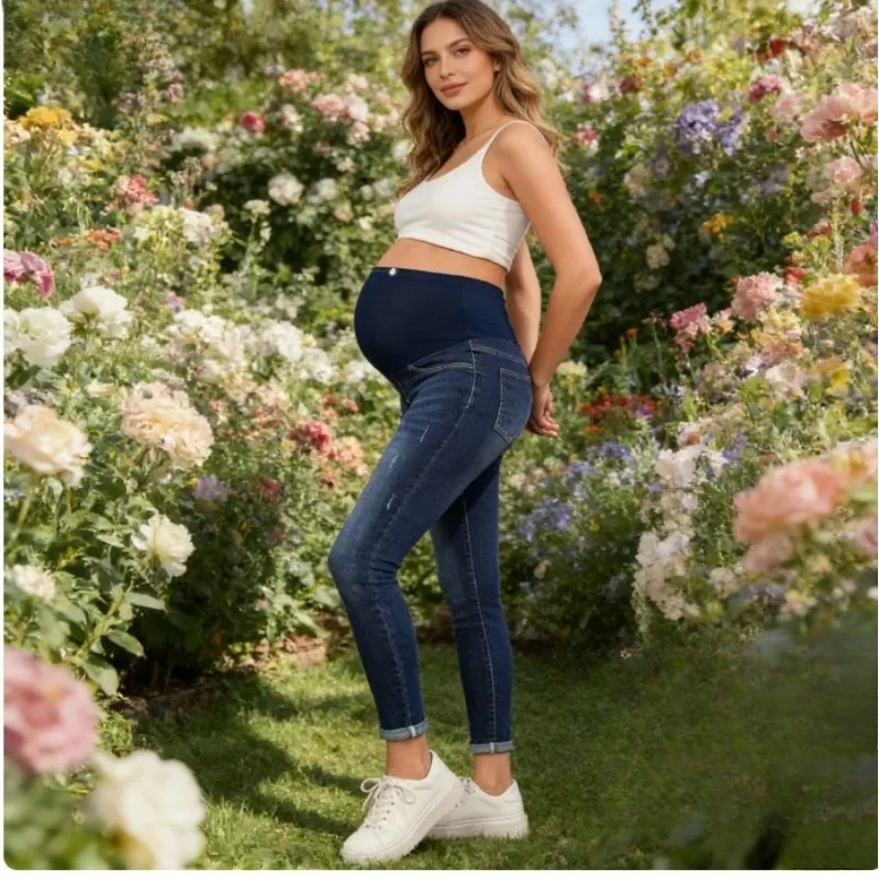 Pantalones vaqueros de maternidad de cintura alta para mujer, pantalones vaqueros elásticos ajustados con soporte para el vientre y levantamiento de glúteos, pantalones vaqueros para embarazo, nuevos pantalones de maternidad