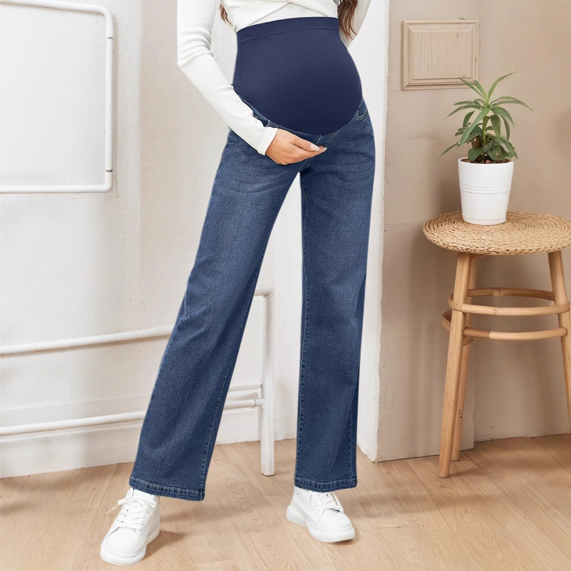Pantalones Vaqueros Rectos para Mujeres Embarazadas, Jeans de Maternidad de Cintura Alta con Soporte para el Vientre, Corte Ajustado, Ropa Casual de Primavera para Embarazo