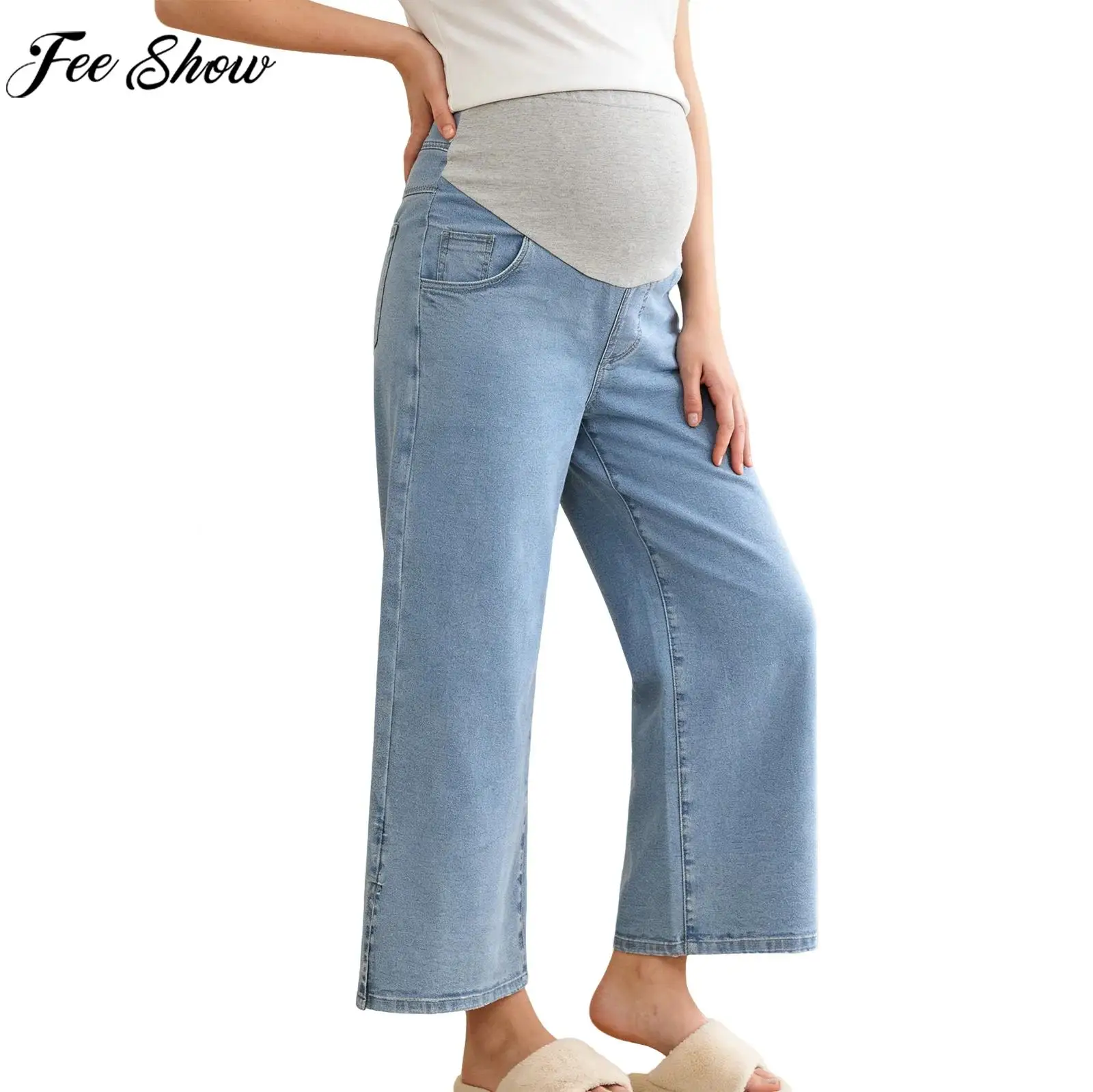 Pantalones vaqueros de maternidad, pantalones vaqueros abdominales para mujeres embarazadas, pantalones azules, ropa de maternidad, pantalones para embarazadas, ropa de embarazo