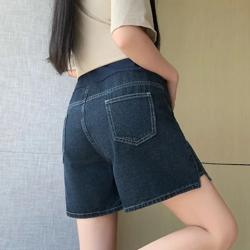 Pantalones cortos de verano estilo coreano para embarazadas, vaqueros de maternidad con abertura lateral, pierna ancha, pantalones de mezclilla sueltos para embarazo