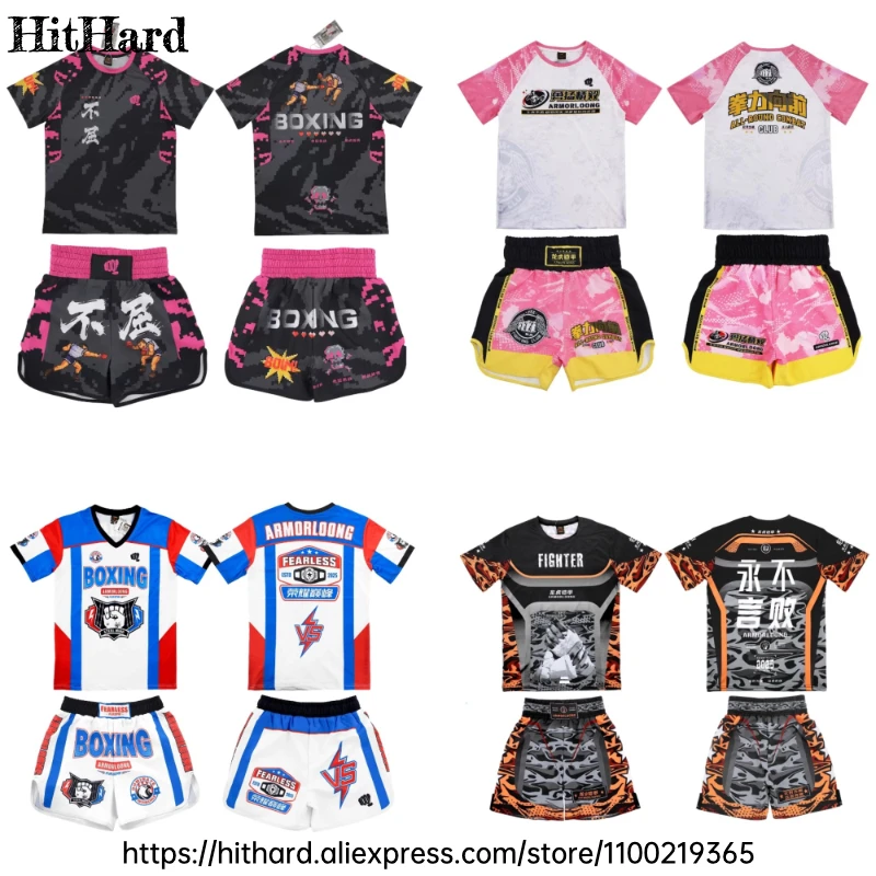 Conjunto de pantalones cortos y camiseta de boxeo para hombres, mujeres y niños, uniforme Sanda Wushu, pantalones cortos de Muay Thai, pantalones de entrenamiento de artes marciales MMA Kickboxing