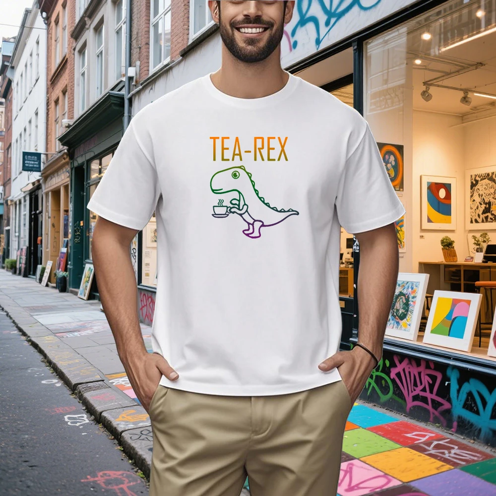 Camiseta informal de verano para hombre, camisetas de calidad 100% de algodón, diseño divertido de dinosaurio, estampado con cuello redondo, camiseta para hombre, camisetas para hombre