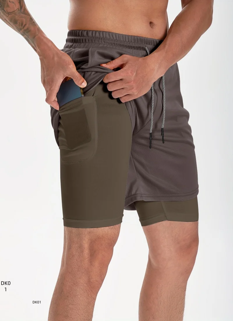Pantalones Cortos Deportivos de Doble Capa para Hombre, Verano 2025, Moda Casual, Transpirables, de Secado Rápido, para Entrenamiento, Running y Fitness