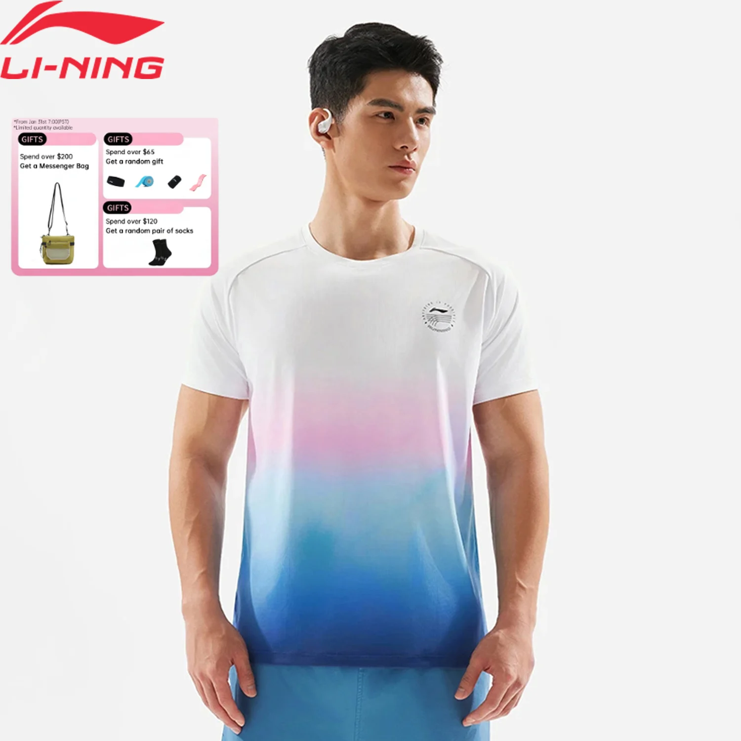Li-Ning Camiseta para correr para hombre AT DRY 100% poliéster, corte regular, transpirable, reflectante, jersey deportivo ATSV091