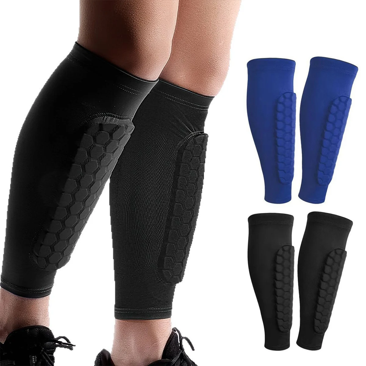 1 par de espinilleras de fútbol, mangas con espuma, manga de compresión de pantorrilla, almohadillas de panal, mallas deportivas y equipo de fútbol