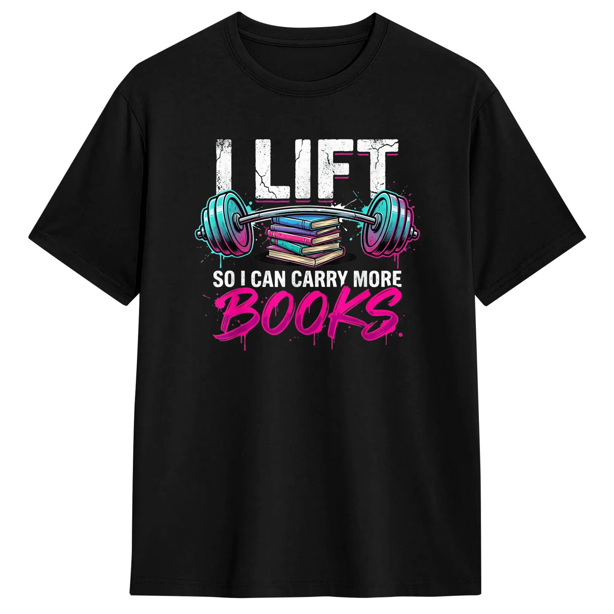 Camiseta para amantes de la lectura con estampado de "Lift So I Can Carry More Books", camiseta divertida de algodón puro para hombre, camisetas con cuello redondo, idea de regalo