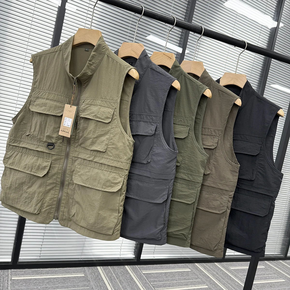 Chalecos finos de malla para exteriores para hombre, chaquetas sin mangas para escalar, chalecos transpirables con múltiples bolsillos para fotografía de pesca, novedad de verano 6