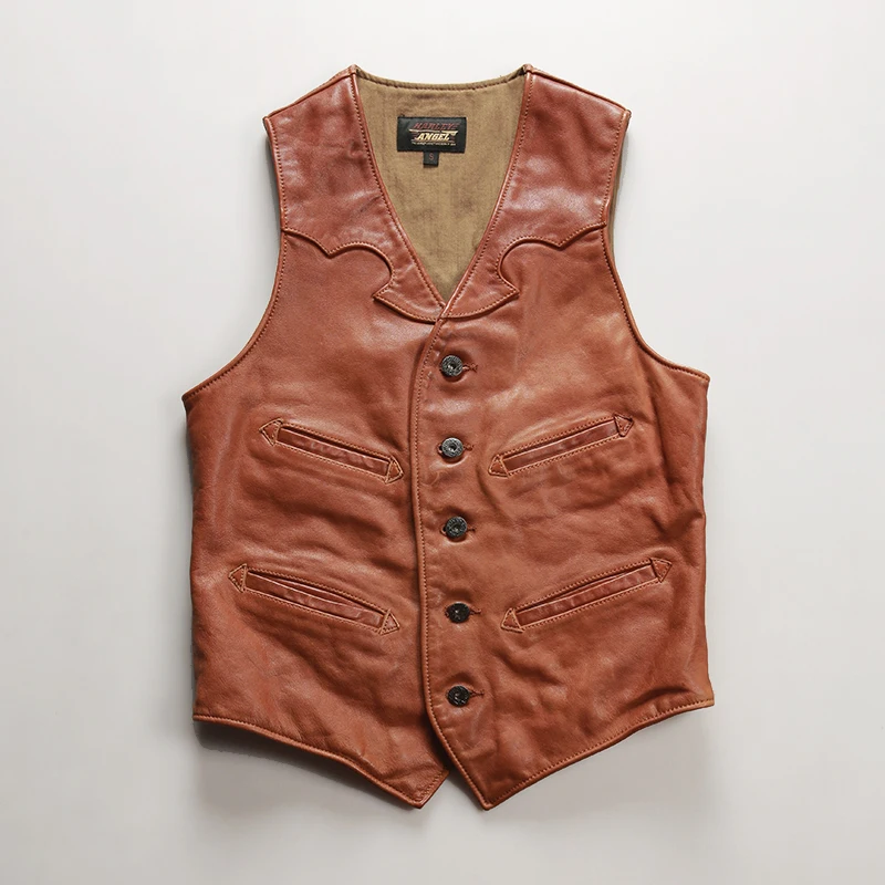 Chalecos de Cuero Genuino para Hombre, Chaquetas sin Mangas de Piel de Vaca