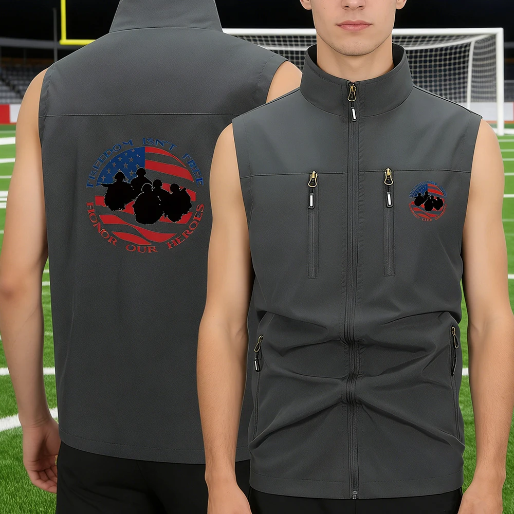 Chaleco de Hombre para Exteriores, Multibolsillos, Sin Mangas, con Estampado Honor a Nuestros Héroes, para Pesca, Senderismo, Viajes y Uso Casual