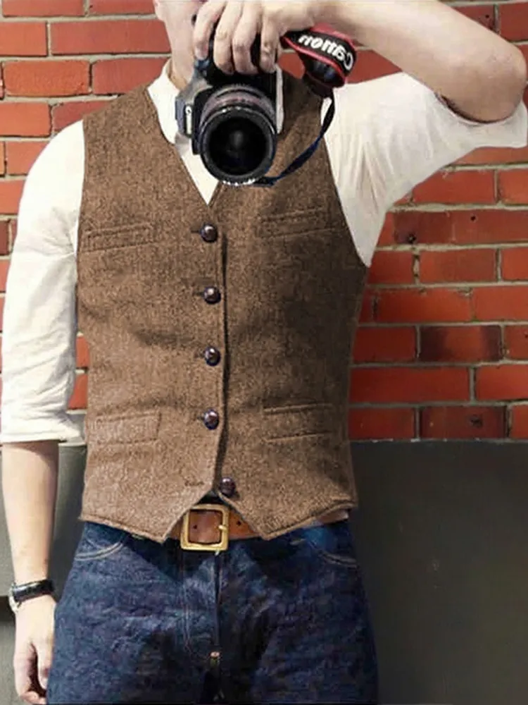 Ceco de Lana a Cuadros para Hombre, Estilo Británico Informal, Otoño Invierno, Talla ande, Estilo Urbano, Corto, Decorad...