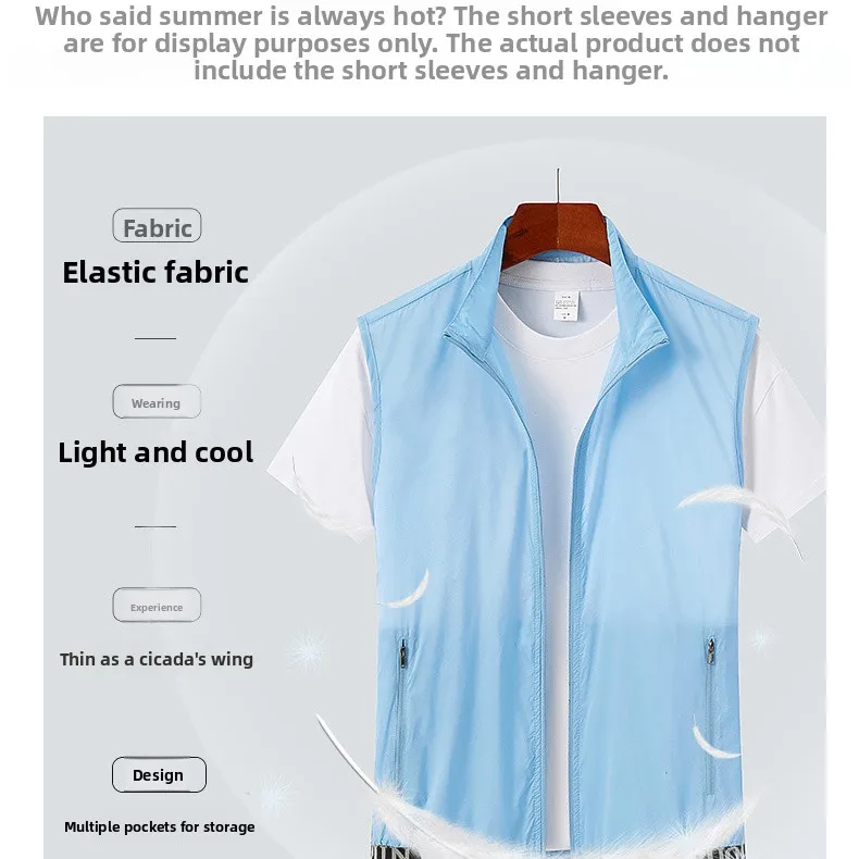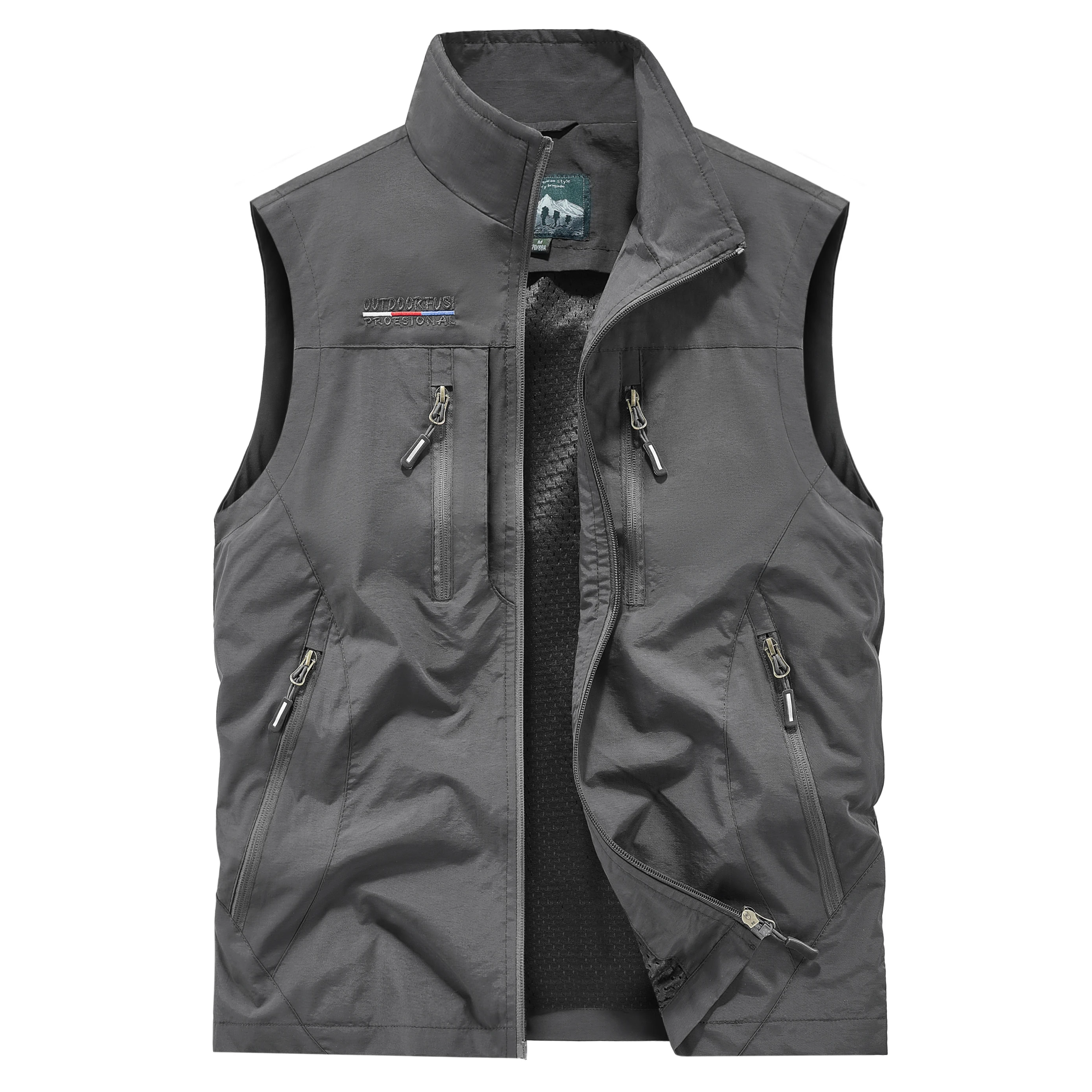 Chalecos finos de malla para exteriores para hombre, chaquetas sin mangas para escalar, chalecos transpirables con múltiples bolsillos para fotografía de pesca, novedad de verano 6