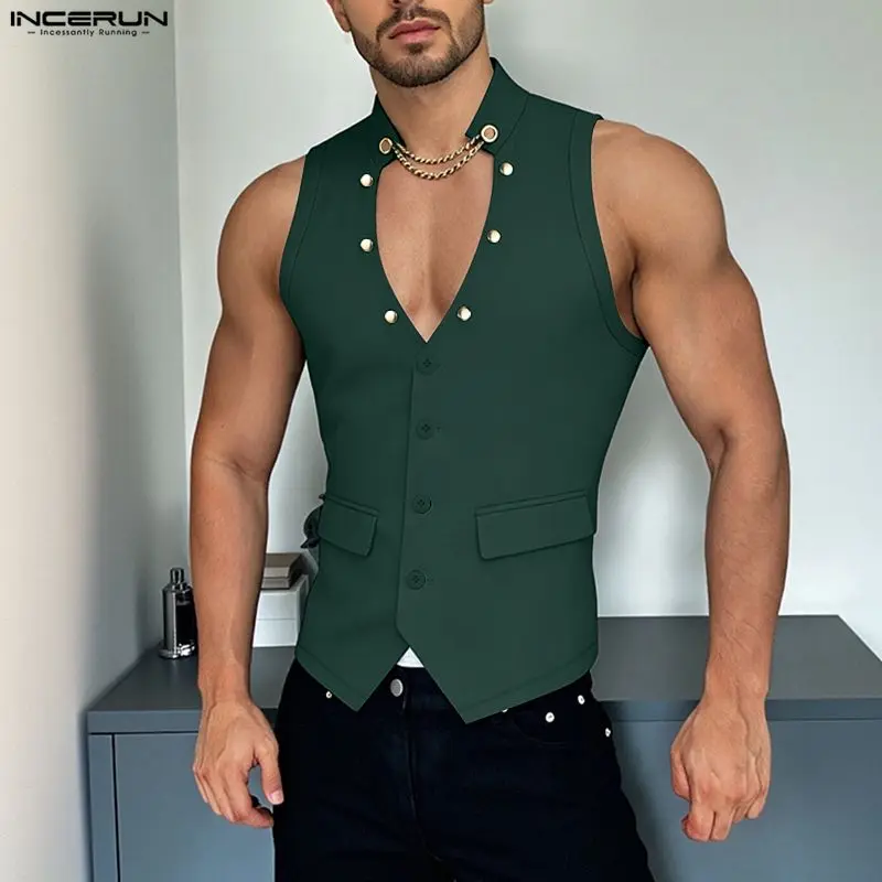 Chalecos INCERUN para Hombre, Color Sólido, Cuello en V, Sin Mangas, con Botones, Estilo Casual, Moda 2026, Tallas S-3XL