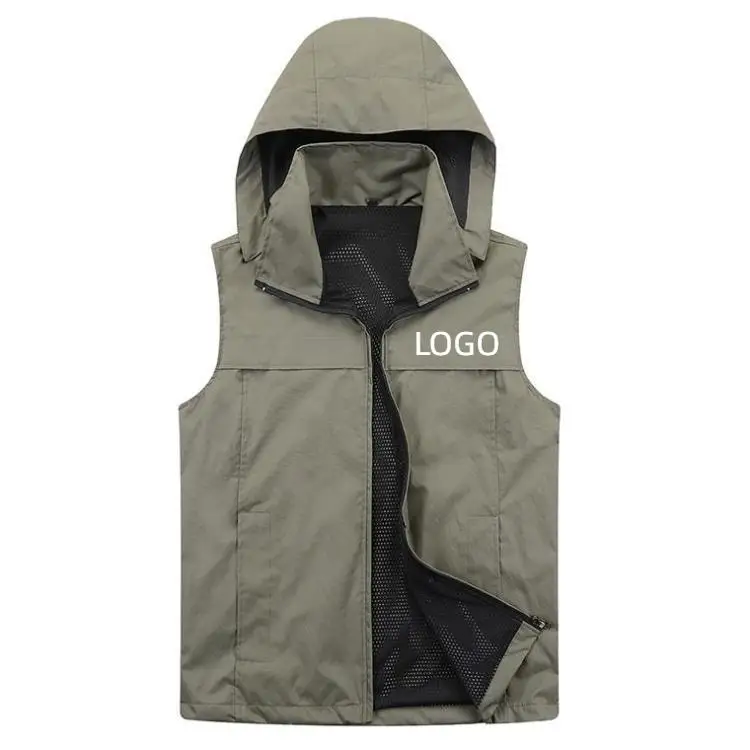 Chaleco con capucha de una sola capa para deportes al aire libre, Top personalizado para ciclismo, senderismo, pesca, caza, chaleco, abrigo con logotipo impreso