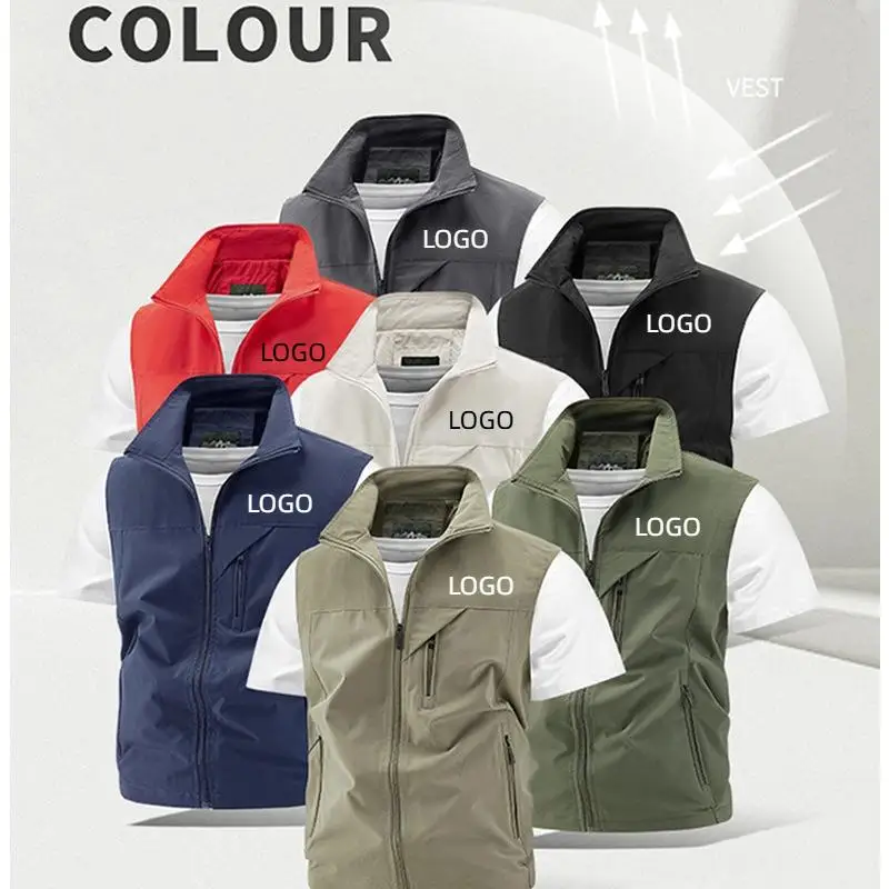 Chaleco de malla de verano de secado rápido para hombre, ropa de trabajo con logotipo personalizado, fotografía de pesca, chaleco multibolsillo