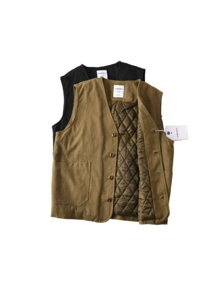 Chaleco de pana para hombre, ropa de trabajo de cuello de talla grande a la moda para otoño e invierno, Top versátil con múltiples bolsillos y espalda descubierta