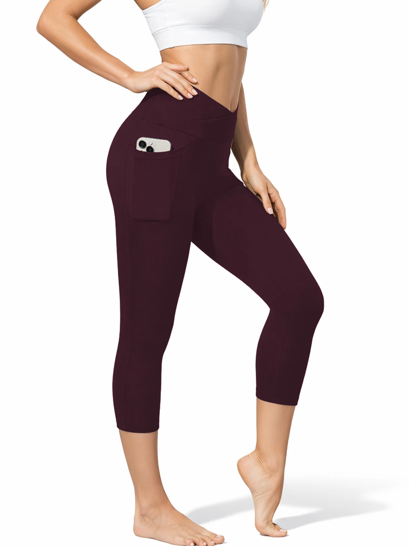 Pantalones Capri de Cintura Alta Cruzada Súper Suaves para Mujer con Bolsillos, Control de Abdomen, No Transparentes, Leggings para Entrenamiento, Yoga y Running