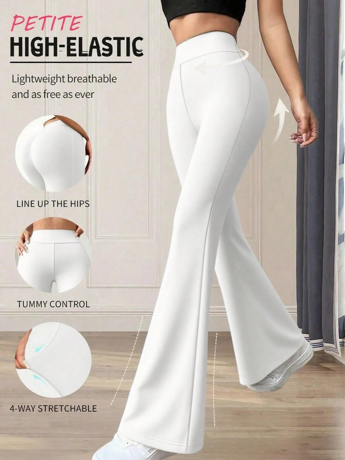 Pantalones de yoga acampanados blancos de cintura alta para mujer, leggings de corte bootcut con control de abdomen y efecto levantacola, elásticos